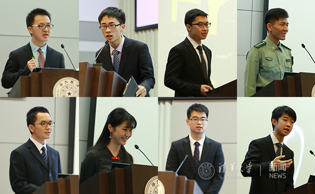 胡耀文、余天呈、乔明达、沈天成、钟玲、胡昌然、周乐一、王子宁(从上到下、从左到右)讲述自己在清华成长的经历。记者 苑洁 摄