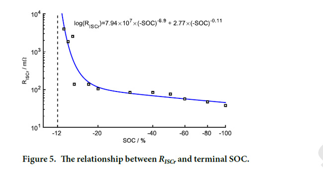 (b) 内短路等效电阻与过放电程度之间的对应关系