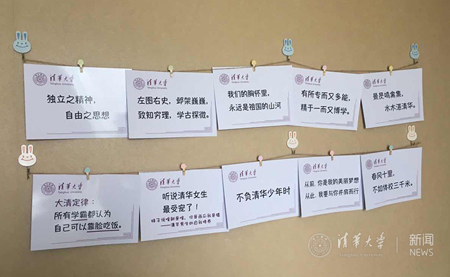 beat365官方唯一入口广西招生组为学生准备的清华主题合影手卡墙。