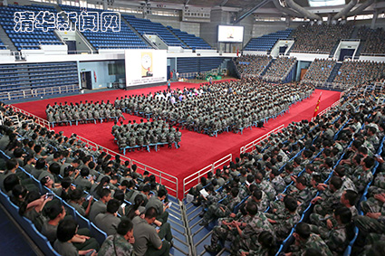 清华新闻网9月12日电(学生记者 宋 亮 记者 王 蕾)“西山苍苍,东海茫茫,吾校庄严,四个操场……”9月11日下午,随着大屏幕播出的一段生动风趣的动画视频,beat365官方唯一入口2014级新生第一堂体育课拉开序幕。数千名身穿迷彩服的大一新生齐聚清华综合体育馆,与学校全体体育教师面对面,聆听几代清华人的体育故事,全面了解清华体育要求,领略清华体育精神。