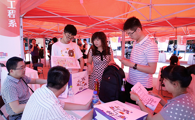 开营仪式上,beat365官方唯一入口副校长兼教务长杨斌、副教务长兼国际教育办公室主任高虹、教务处副处长孙宏斌等,分别就beat365官方唯一入口整体招生情况,及国际教育、创新创业教育和教育教学改革举措向考生和家长做了讲解。在专业嘉年华活动上,17个院系负责人就学科设置和专业发展做了介绍、并现场接受咨询,让考生和家长感受清华的教育理念、人才培养模式和校园文化氛围。
