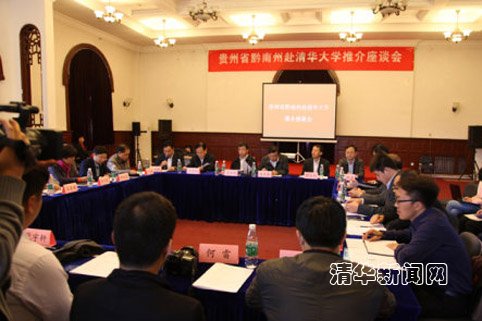 黔南州委书记龙长春从区位、交通、气候、风景名胜、民族文化等五个方面阐释了黔南州的优势,并代表黔南州期待莘莘清华学子加入建设黔南的队伍。