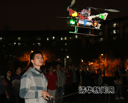 不要小看了这带有四个螺旋桨的“小飞机”。它不是模型,而是真材实料的“飞机”,由清华学生设计主要的飞行技术内核的它能飞起来,绝非易事。