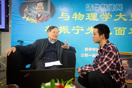 图为杨振宁先生与学生亲切交谈。学生记者 王皓冉 摄