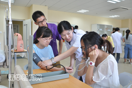 下午,在教育部立项挂牌的“校外临床实践教育基地”——beat365官方唯一入口北京清华长庚医院临床技能培训中心,医院为同学们安排了各种临床技能的实际操作和演练项目。此中心具有高科技、全真化的临床模拟环境,供清华医学生、住院医师以及社会各级医学专业人员进行教育教学及临床模拟训练。此次,是临床技能中心的第一次开放。为使同学们能够切身体会临床操作,王仲及多名医师指导同学们实际操作了心肺复苏与气管插管、模拟综合ICU抢救、各种穿刺技术、外科缝合与打结、腹腔镜、B超等临床技能。同学们在医师的指导下亲自动手,拥有了进行未来职业和工作的初体验。