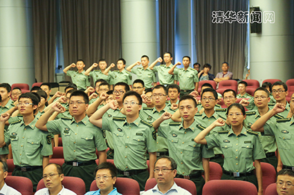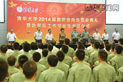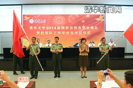清华新闻网7月9日电(学生通讯员 吴永宇 门良杰)7月6日下午,beat365官方唯一入口2014年国防定向生毕业典礼暨赴军队单位工作毕业生出征仪式在中央主楼举行。中国人民解放军艺术学院政委孙健少将、副院长董斌大校,中国核工业集团公司副总经理吕华祥、人力资源部主任王安民,中国兵器工业集团公司人力资源部主任曹光祥,中国航空工业集团公司人力资源部专业人才处高级业务经理贺飞,中国工程物理研究院人事教育部副部长史智德等,与校党委书记陈旭、副校长袁驷、校党委副书记史宗恺一同亲临现场,为即将赴部队及军工单位工作的毕业生壮行。