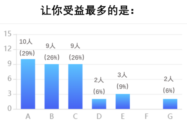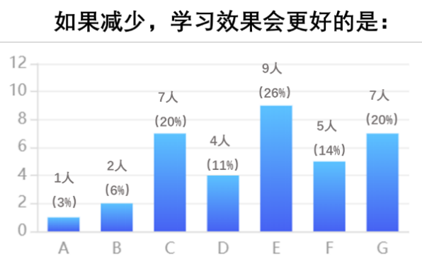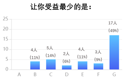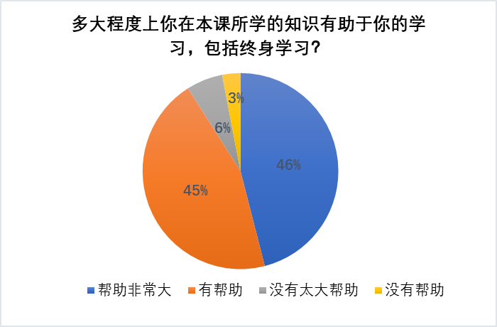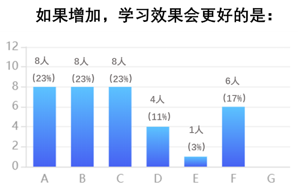 为了更好地把握方向,提高教学成效,课程中期我们做了学生反馈调查,如下图所示,根据反馈结果增减和改良了上述教学内容,使之更为完善。