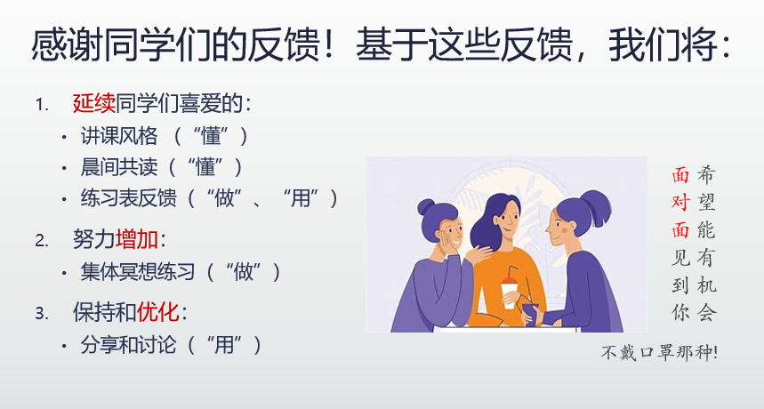 2020年4月“正念与日常”线上课程中期学生反馈调查结果及调整