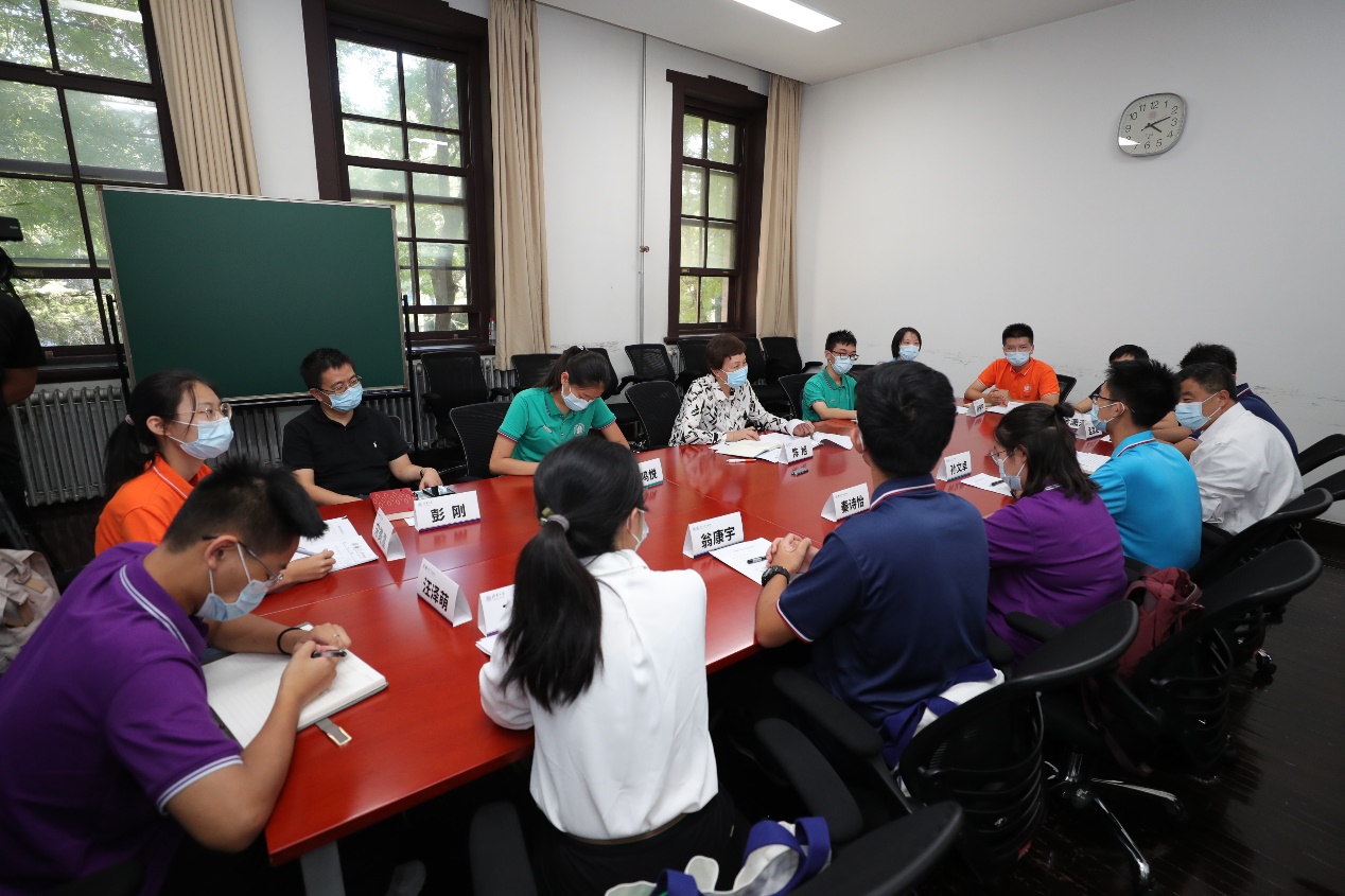 在认真听取完大家发言后,陈旭首先对各位新生的到来表示祝贺与欢迎。她说:“从你们身上我们了解到了今年2020级的本科新生、特别是强基计划新生的整体情况,大家都非常优秀,有着深厚的知识基础、成熟的人生思考以及积极向上的生活态度,对大学生活充满了信心与美好憧憬,期待大家在清华园里继续绽放光彩。”