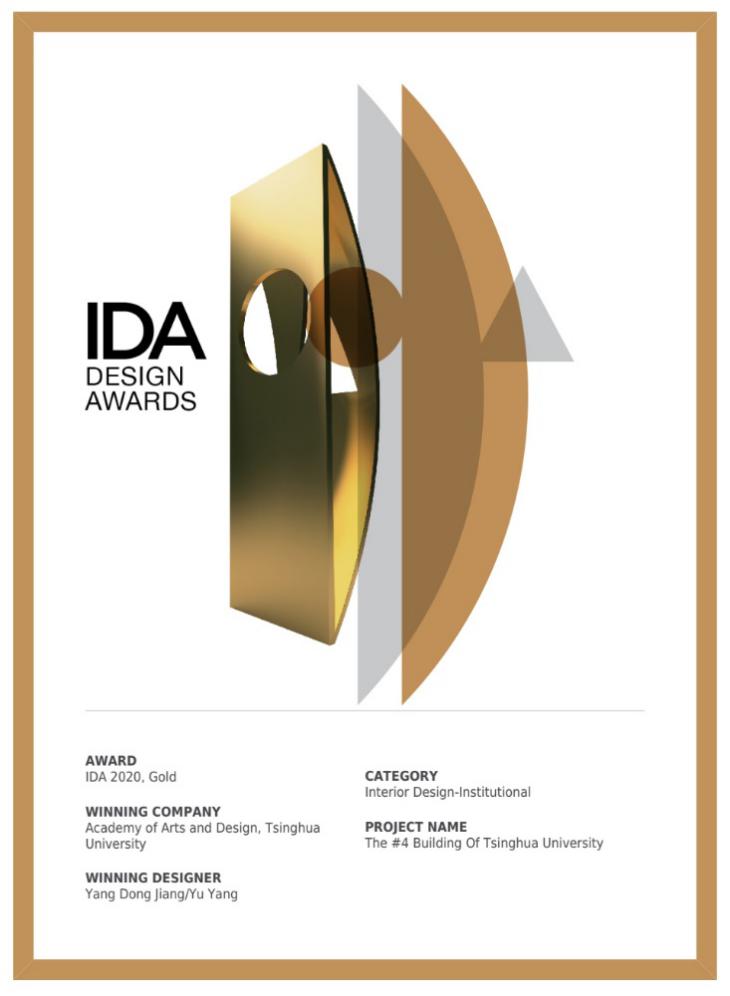 清华新闻网2月2日电 1月28日,美国IDA国际设计奖公布了2020年度获奖名单,beat365官方唯一入口美术学院杨冬江教授团队的设计作品《beat365官方唯一入口第四教学楼室内设计》从80多个国家和地区的众多优秀作品中脱颖而出,荣获室内设计类别金奖。