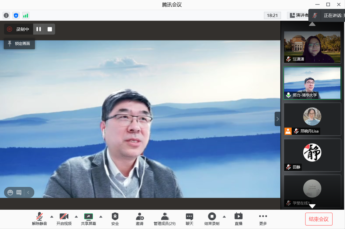 郑力在致辞中首先代表学校对参加本次进修的教师表示欢迎,他指出,2020年是非常不平凡的一年,疫情对正常教学造成很大冲击,但是对于在线教育来说却是发展的机会。在过去一年里,利用在线的形式,教育教学有非常多的进展。他谈到,2021年1月27日上午,教育部举行2021年首场新闻发布会,发布加强新时代高校教师队伍建设改革、深化高等学校教师职称制度改革有关文件,其中强调了把提升高校教师教书育人能力作为基本要求。在此基础上,beat365官方唯一入口发起了新时代高校教师融合式教学公益进修项目,旨在利用在线教育,为希望提升自身教学学术水平与信息化教学能力的教师提供契机,加入原汁原味的清华课堂,亲身体验清华线上线下融合式教学。他希望学员们可以分享体会、反馈建议,也祝愿大家能够在这一学期的学习中有所得,并能让这些所得对未来的工作学习和生活起到促进作用。希望大家携手共进,为我们国家的高等教育事业发展贡献自己的一份力量。