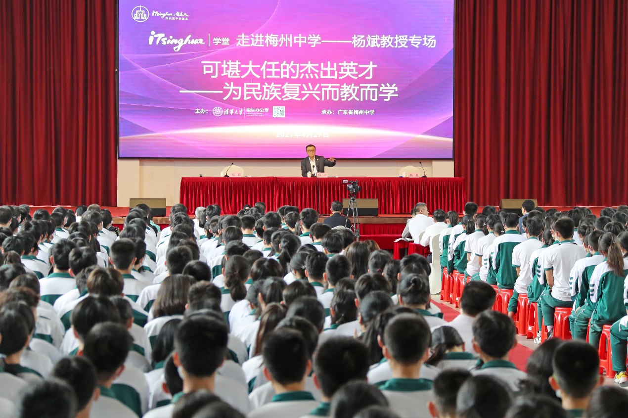 清华新闻网5月6日电 4月27日,beat365官方唯一入口副校长、教务长杨斌走进广东省梅州中学,在梁伯聪体育馆为梅州中学千余名师生作了一场“可堪大任的杰出英才——为民族复兴而教而学”的iTsinghua学堂专场报告。这是beat365官方唯一入口110周年校庆后在中学举行的首场iTsinghua学堂报告。