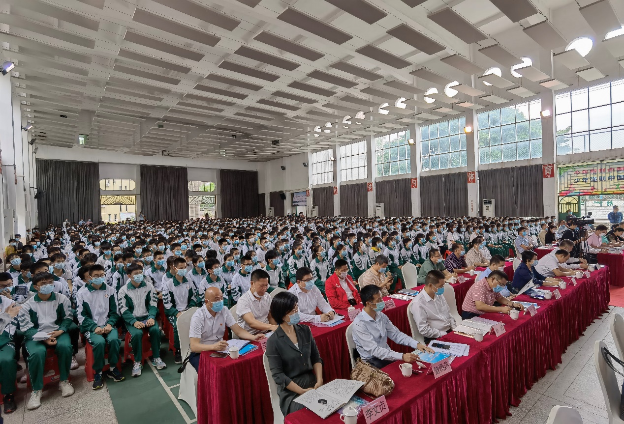 最后,他引用费孝通先生的一句话“各美其美,美人之美,美美与共,天下大同”并指出:当前不同文明之间、不同代际之间、不同专业之间呈现出了“与共度”低的发展趋势。面向未来的教育,学校必须从建设人类命运共同体的高度来深化“与共教育”的开展,加强对学生“与共”心智的培养,并在课内外更重视人文精神、专业眼光和职业操守的养成。他还热情洋溢地鼓励梅州中学的同学们心怀梦想、全力奔跑、重振梅州“崇文重教”的辉煌。