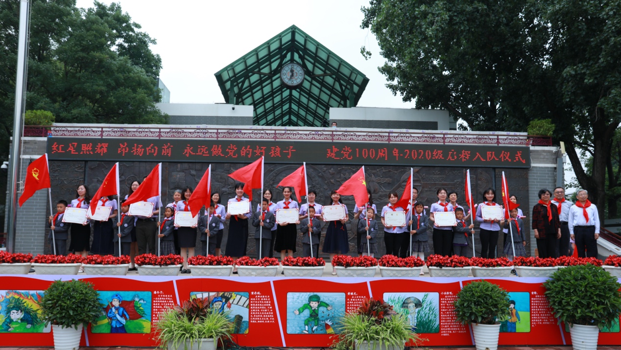 五年级的少先队员们为新入队的一年级同学授巾,鲜艳的红领巾在新队员的胸前飘扬,在庄严的宣誓声中、在奋力的呼号声里,小小少先队员们用纯粹而坚定的眼神诉说着为共产主义事业贡献力量的信心和决心。