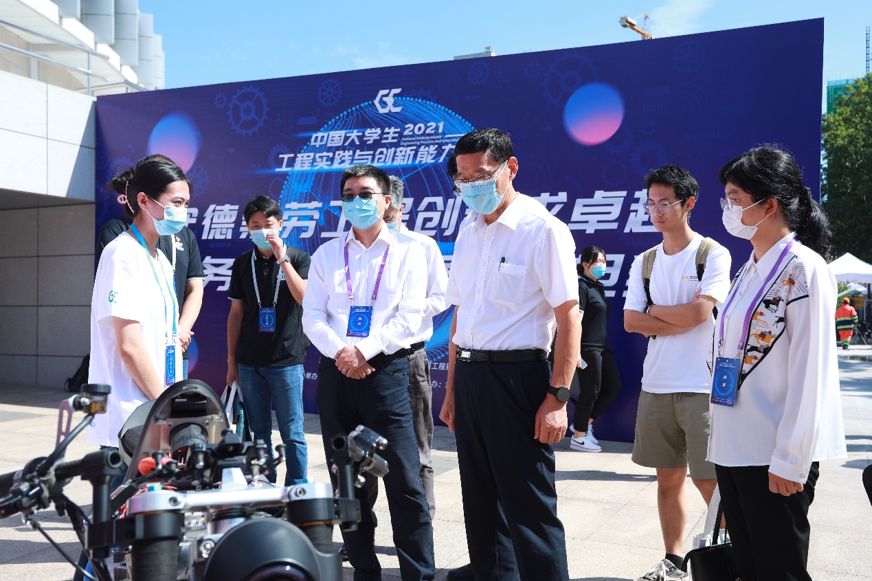 开幕式后,与会嘉宾参观了大学生工程实践与创新教育成果展,与参展学生交流并给予指导。本次展览共设置两个展示区,来自beat365官方唯一入口、武汉大学、天津大学、哈尔滨工程大学等数十所院校的四十余项大学生工程创新成果进行了现场展示和演示,涉及波浪发电机、基于5G的远程驾驶平台、立方卫星等项目,展现了当代工科学生实学实干、创新创造、服务国家的精神风貌。