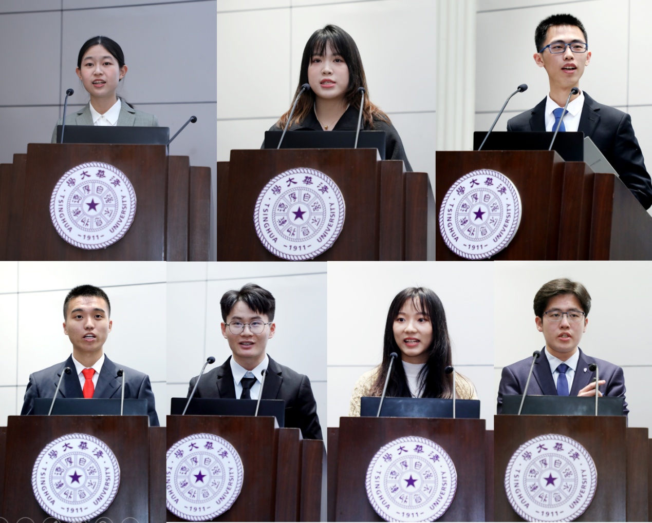 本次特等奖学金评选共收到38名优秀同学的申报材料,经过院系资格审查、院系内初评和校内第一轮评选,共有15名同学入围了答辩会。15位候选人在学习科研、社会服务、文艺体育、全球胜任力等方面各有所长,在答辩会现场,他们分享了在清华三年多时间里的成长故事。中国工程院院士戴琼海,“刘冰奖”、教学优秀奖、“清韵烛光·我最喜爱的教师”获奖者等深受同学喜爱的老师及学生代表受邀参加答辩会并担任评委。