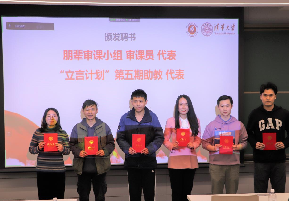 会上,主持人还宣布了博士生讲师团朋辈审课小组成员名单,博士生讲师团宣讲指导顾问张牧云为本学期朋辈审课小组成员代表与本期“立言计划”助教代表颁发了聘书。