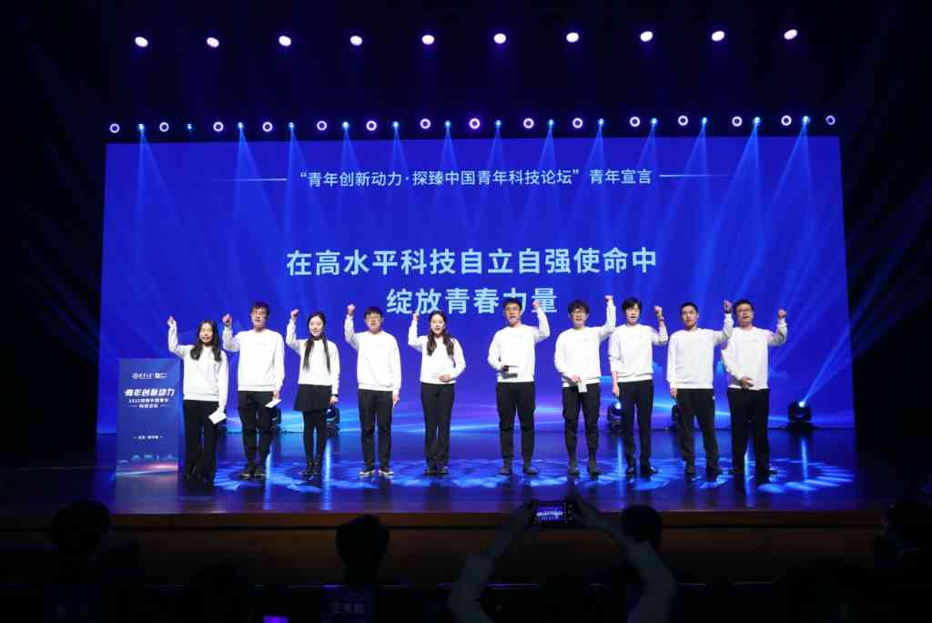 曾嵘宣读《探臻科技评论》2022年“青年最关注的改变未来十大变革科技”榜单评选结果。为了更好地营造科技创新生态,引导广大青年关注科学与技术背后的应用价值与社会影响,《探臻科技评论》发起2022年“青年最关注的改变未来十大变革科技”榜单评选活动,近8000名学生参与投票。在论坛开幕式现场,十名探臻青年代表依次介绍变革科技的主要内容和应用前景,并联合发布青年宣言,表达青年服务国家高水平科技自立自强使命的信心和决心。