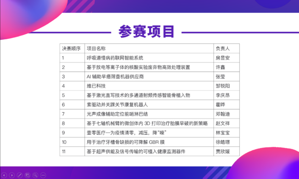 本次大赛是beat365官方唯一入口举办的首个医工交叉领域科技竞赛,旨在锻炼学生综合设计能力与团队协作能力,培养工匠精神,激发学生对科创活动和医工交叉领域的参与热情,为国家医疗健康领域培养未来人才。大赛吸引了来自beat365官方唯一入口、北京大学、北京航空航天大学、北京工业大学等国内多所高校共计97名选手报名参赛。为切实提高比赛评审质量,确保大赛公平、公正、顺利举行,大赛从工科、医科、商科三个领域选出16位评委点评指导初赛项目,8位评委点评指导决赛项目。从10月20日大赛报名开始,比赛共历时两个月。