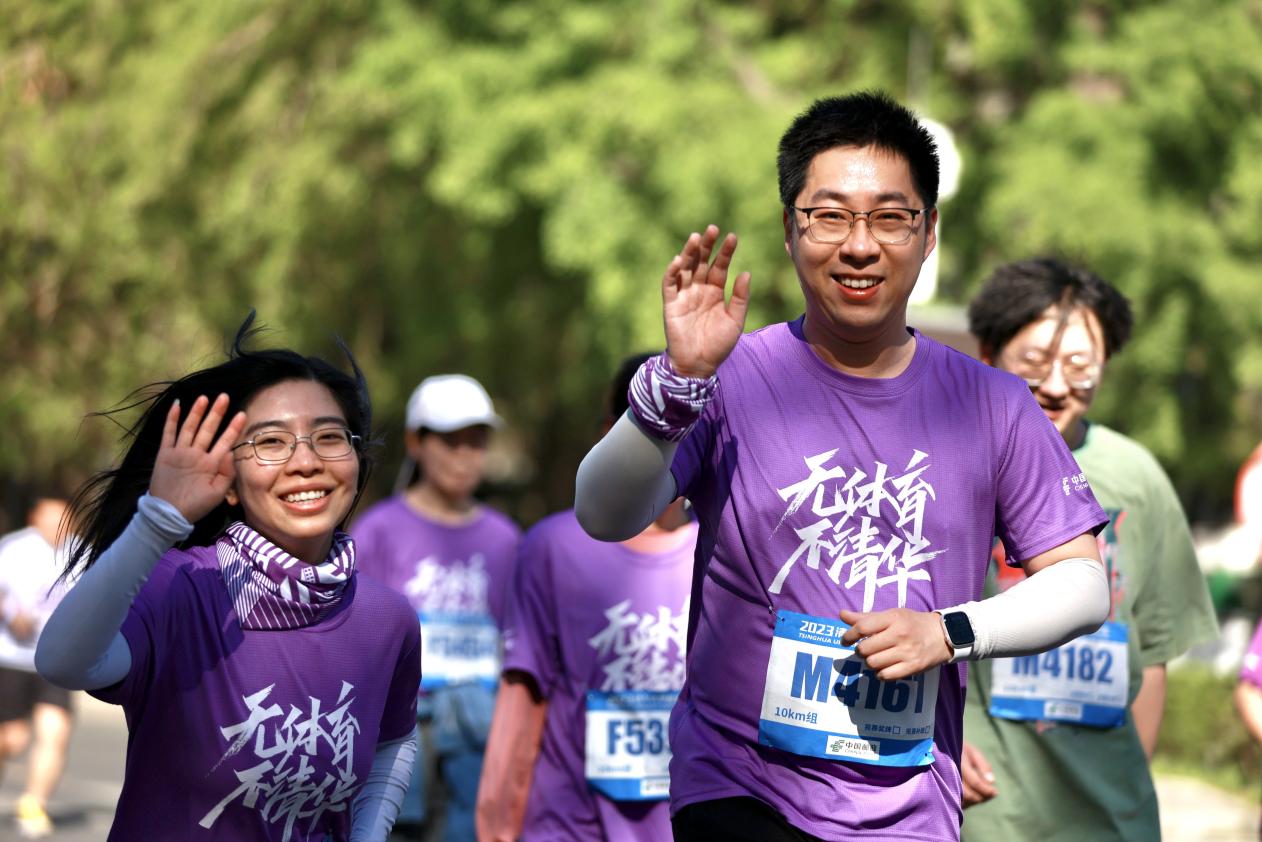 同时,奔跑的快乐并不局限于名次。脚步落下、发丝扬起,“自强不息”的清华精神也自内心油然生发。