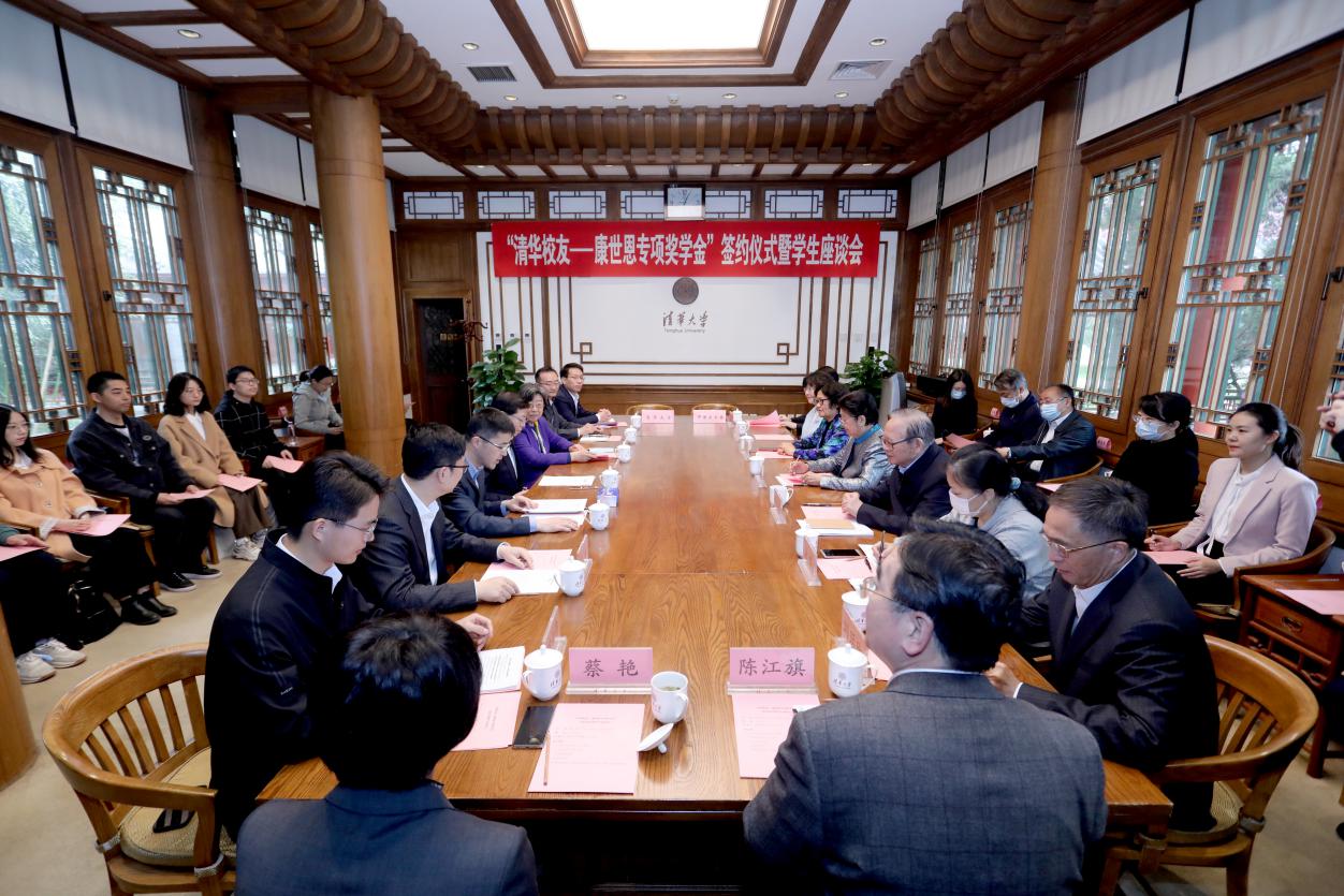 活动上,研究生工作部部长赵岑汇报了“清华校友——康世恩专项奖学金”评定情况。双方续签了“清华校友——康世恩专项奖学金”协议。