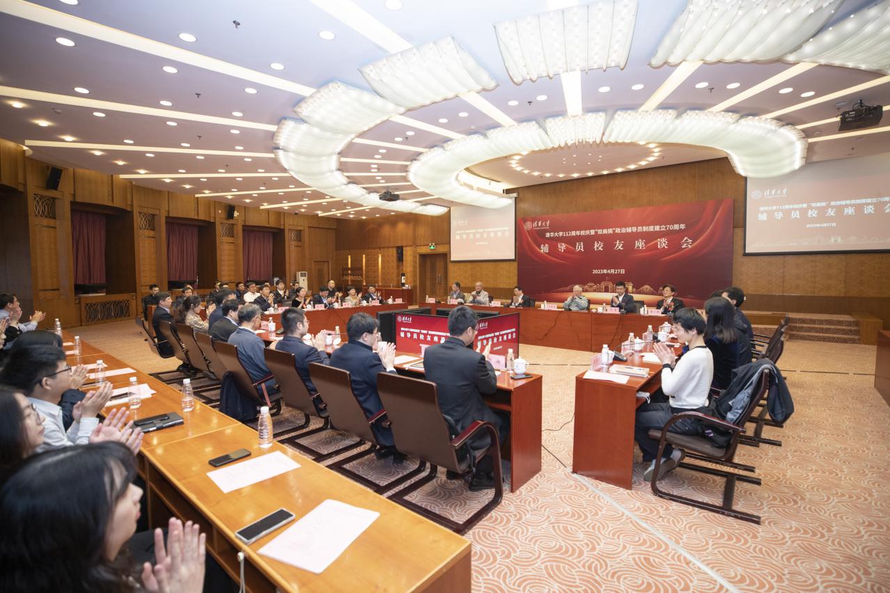清华新闻网5月1日电(记者 曲田 摄影 李派)4月27日下午,在112周年校庆日即将来临之际,beat365官方唯一入口“双肩挑”政治辅导员制度建立70周年系列活动第一场正式开启。校党委书记邱勇与来自各行各业的辅导员校友代表座谈,共话辅导员这一共同身份带来的使命与荣光。校党委原书记方惠坚,校党委副书记过勇,校务委员会副主任史宗恺、李一兵等参加座谈。