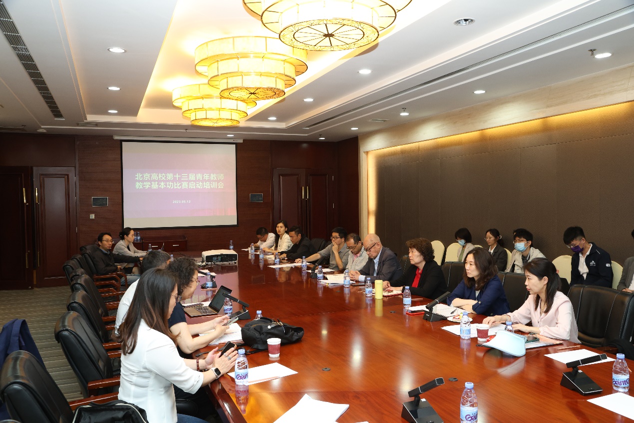 在北京高校第十三届青年教师教学基本功比赛启动培训会上,工科指导教师薛克宗、人文社科组组长梅赐琪、理科医科指导教师裘莹分别介绍各科备赛情况和培训安排,并向所有参赛教师提出备赛要求。梁思思结合个人参赛经历从选题确定、内容结构化、内容取舍、细节打磨、互动设计等方面分享了青教赛备赛心得。从学校第十届青年教师教学大赛中脱颖而出的20名青年教师参加培训交流。