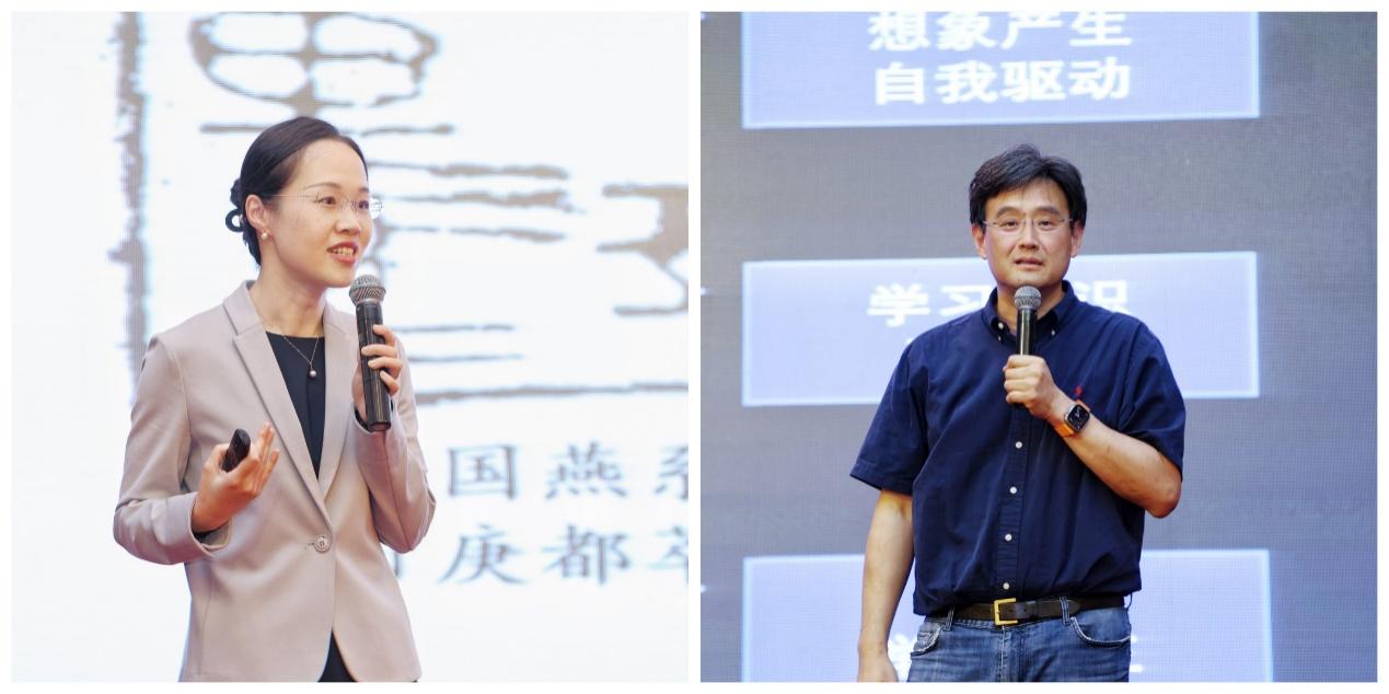 梁思思(左)带来教学示范课,欧阳证(右)作主题报告