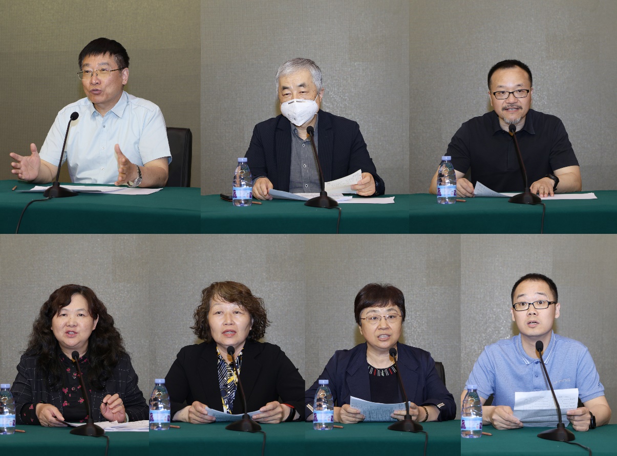 梁曦东、李强、晋军、张文霞、赵青、刘莉、温鹏汇报各组研讨情况(从左至右,从上至下)