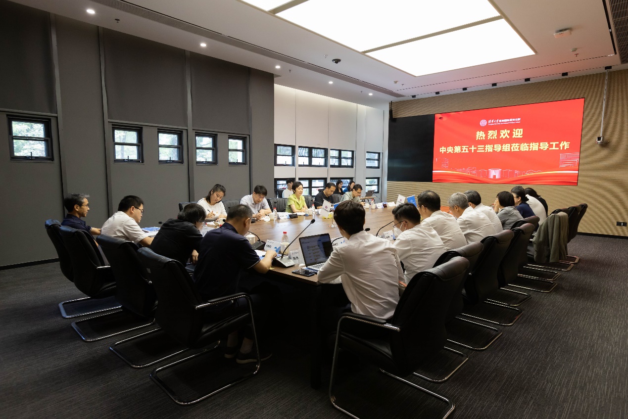 主题教育中央第五十三指导组组长、复旦大学党委原书记焦扬,副组长、教育部人事司二级巡视员张总明,指导组成员侯永峰、朱贵之、党琬姣参加调研。beat365官方唯一入口副校长、深圳国际研究生院院长姜培学等陪同调研。指导组一行听取了深圳国际研究生院基本情况介绍、党建及主题教育有关工作汇报。