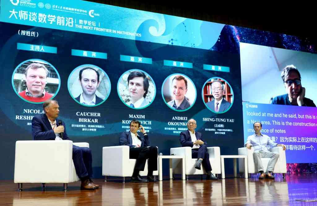 “大师谈数学前沿”数学论坛由莱舍提金主持。对于一系列数学学科发展的前沿问题,丘成桐、孔采维奇、欧克恩科夫、比尔卡尔相继发表各自的洞见。在谈及数学学科未来20年内最重要的挑战时,丘成桐认为是寻找统一量子力学与广义相对论的基本几何模型,并希望年轻学者能够统一数学的不同分支;对于所谓最重要的挑战,欧克恩科夫认为是推动数学解释性科普工作,比尔卡尔认为是改革枯燥的数学教育,孔采维奇则认为,未来难以预测,几何问题,如无穷维的代数几何、量子场论等都是可能的挑战;谈及时下火热的人工智能,丘成桐认为计算机无法创造人类未曾创造的全新概念,但可以帮助我们产生新的想法,更好地理解真实世界。他指出,虽然人工智能力量强大,但人类并不了解它运行的根本逻辑。丘成桐希望能够完全理解人工智能,从基础科学的角度解释其运行原理,才能够完全信赖、充分利用人工智能。这一环节中,嘉宾们还分享了自己的求学与科研经历,并与现场师生进行交流,勉励广大学子们挑战那些看上去不可能的事情,只要付出耐心,一定能作出超出预想的贡献。