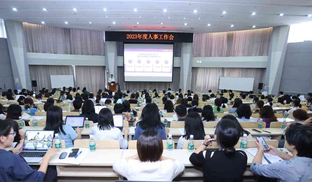 各院系、机关、后勤、支撑服务机构及附属单位的正职领导、人事主管和人事干部等300余人参加了现场会议,京外单位人事工作者通过“荷塘雨课堂”观看会议直播。