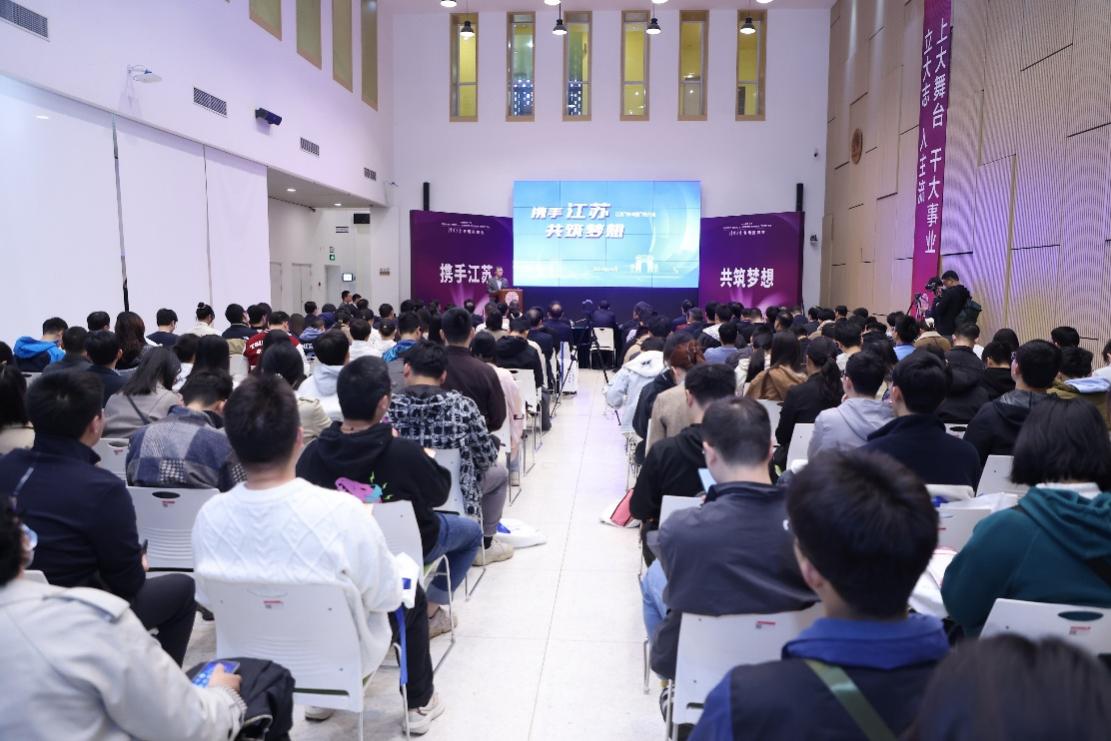 宣讲会上,土木系2011届博士校友、共青团江苏省委副书记熊俊,化学系2004届博士校友、苏州清越光电科技股份有限公司董事长兼总经理高裕弟,机械系2008届博士校友、江苏奇纳新材料科技有限公司董事长彭伟平分享了在苏工作生活的体会。宣讲环节结束后,江苏省120余家重点企事业单位举行了招聘双选活动。