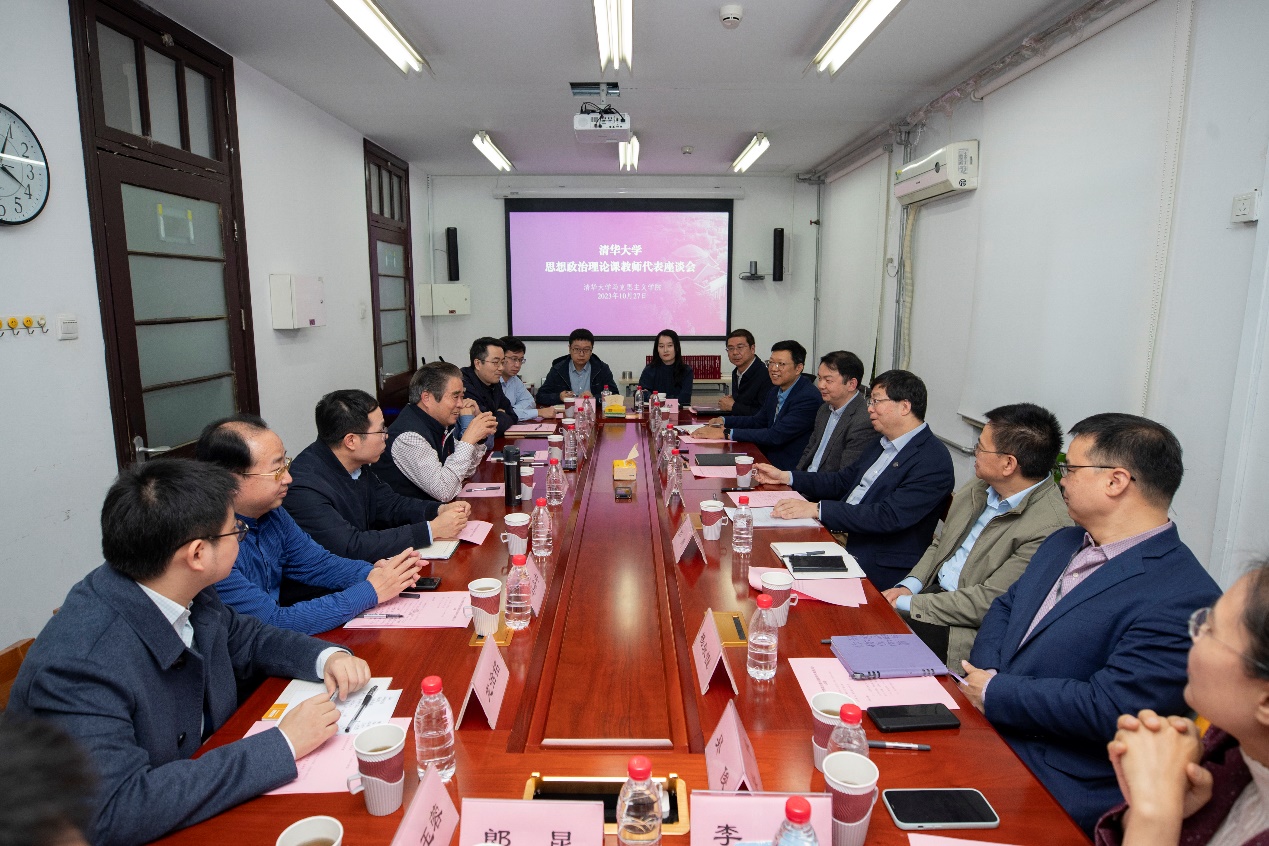 清华新闻网10月31日电(记者 段颖 摄影 李派)10月27日下午,校党委书记邱勇在马克思主义学院主持召开思想政治理论课教师座谈会,副校长彭刚参加。