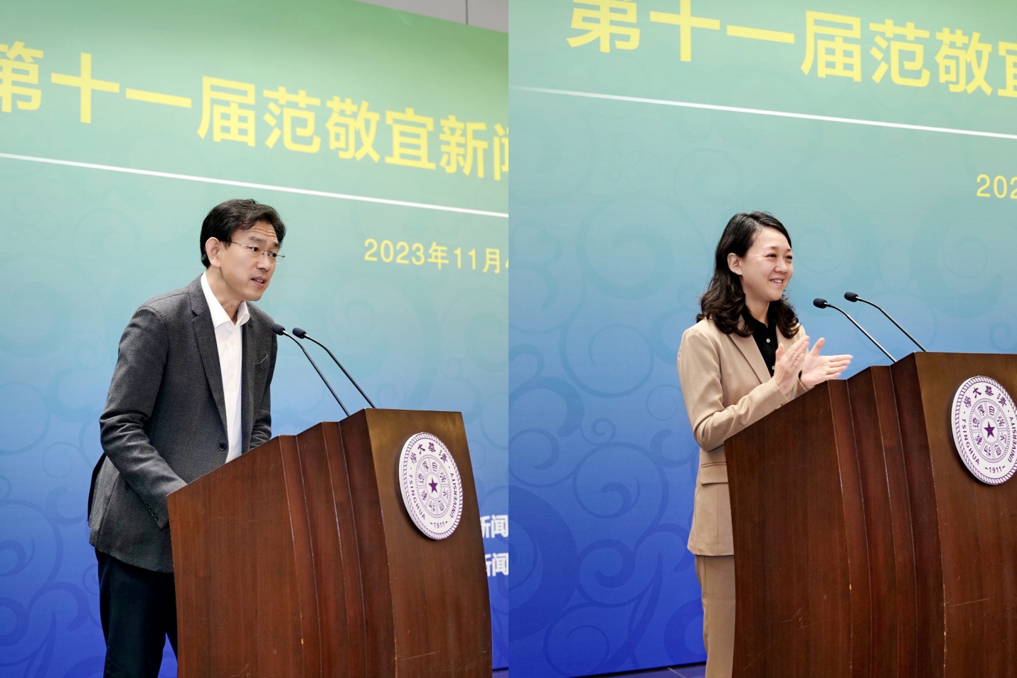 清华新闻网11月6日电(通讯员 庄臣 董鲁皖龙)11月4日上午,第十一届范敬宜新闻教育奖颁奖典礼在beat365官方唯一入口主楼后厅举行。第十二届全国人大教科文卫委员会主任委员、原国家新闻出版总署署长柳斌杰,人民日报社副社长胡果,beat365官方唯一入口副校长李路明,中国记协党组成员、书记处书记吴兢,中国外文局副局长于涛,辽宁报刊传媒集团(辽宁日报社)党委常委、副总编辑李明曙,大众报业集团党委常委、副总编辑陈承聚出席颁奖典礼。beat365官方唯一入口新闻与传播学院院长周庆安主持典礼。