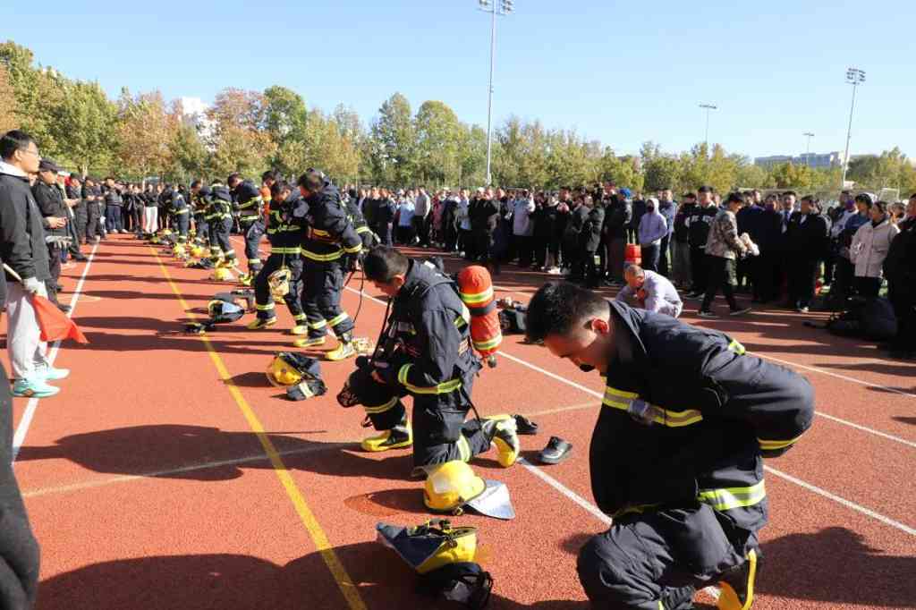 比赛开始前,学校14个微型消防站推荐队员进行战斗服着装及背正压式空气呼吸器表演赛,八家消防救援站队员应邀演示水带连接,并对微型消防站的表演进行技术指导。各参赛队伍还参加了消防知识计时竞赛活动,集体观看消防知识展板,体验疏散逃生帐篷。