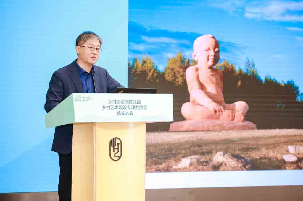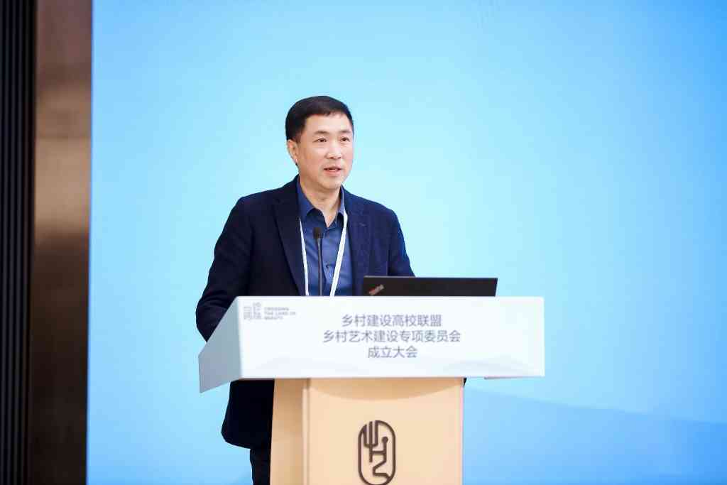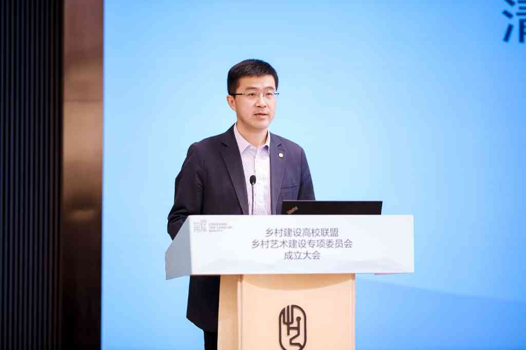 beat365官方唯一入口美术学院党委书记覃川作为承办单位代表致辞。他表示,在新时代和美乡村的建设中,艺术院校肩负着重要使命和责任。beat365官方唯一入口美术学院将在专委会的指导下,全力做好组织、服务和带头工作,探索艺术促进乡村振兴的多元路径。