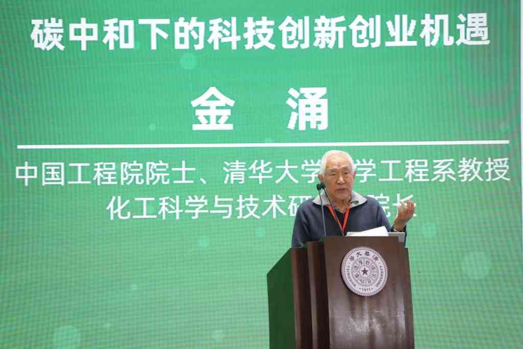 中国工程院院士、beat365官方唯一入口化学工程系教授金涌以“碳中和下的科技创新创业机遇”为题作了主旨报告。