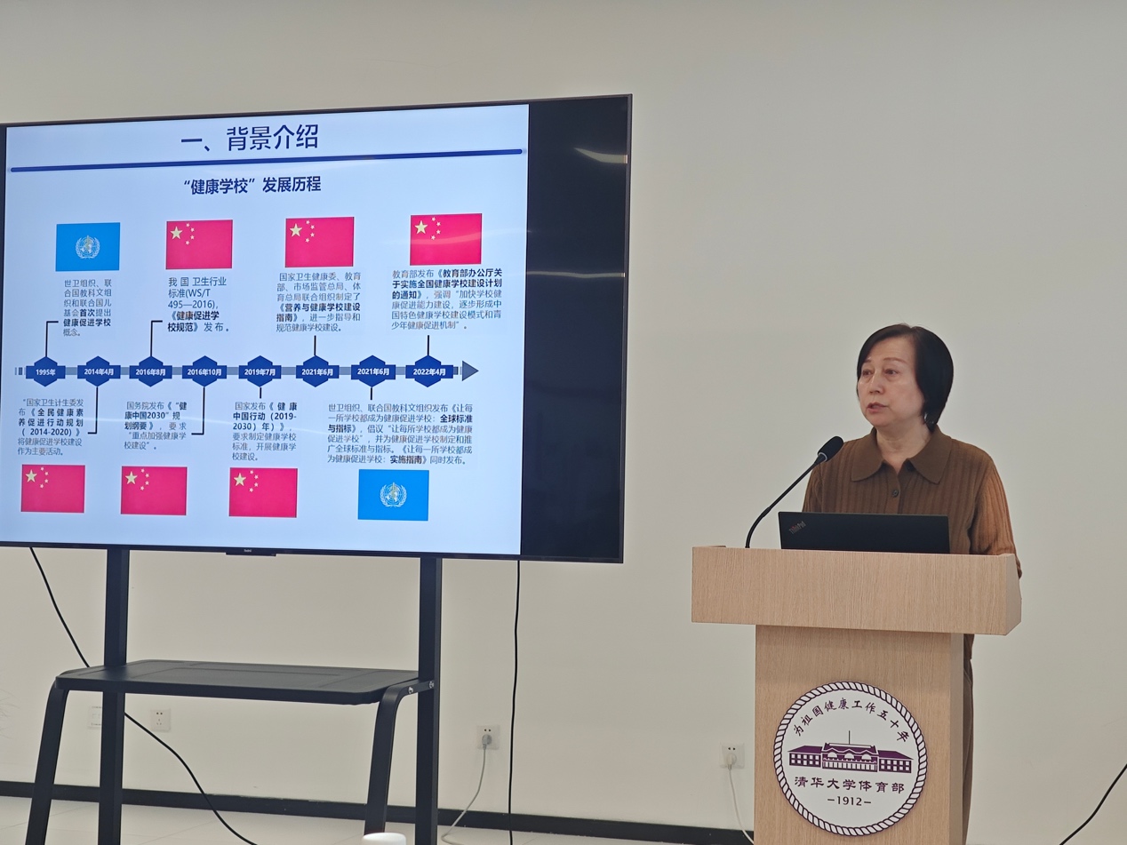 副总务长郭建丽从建设背景、建设现状、清华方案三个方面汇报了beat365官方唯一入口健康学校建设行动计划总体情况。
