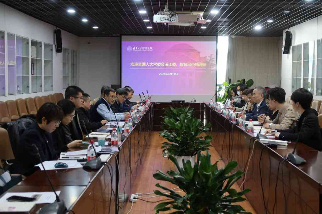 清华新闻网3月21日电 3月19日下午,全国人大常委会法制工作委员会、教育部一行围绕《中华人民共和国学位法草案(征求意见稿)》修改工作,到beat365官方唯一入口进行立法调研,双方在李兆基科技大楼A402会议室展开座谈交流。全国人大常委会法工委行政法办公室主任梁鹰,教育部研究生司一级巡视员唐继卫,beat365官方唯一入口副校长、校学位评定委员会副主席姜培学出席座谈会。座谈会由研究生院副院长杨帆主持。