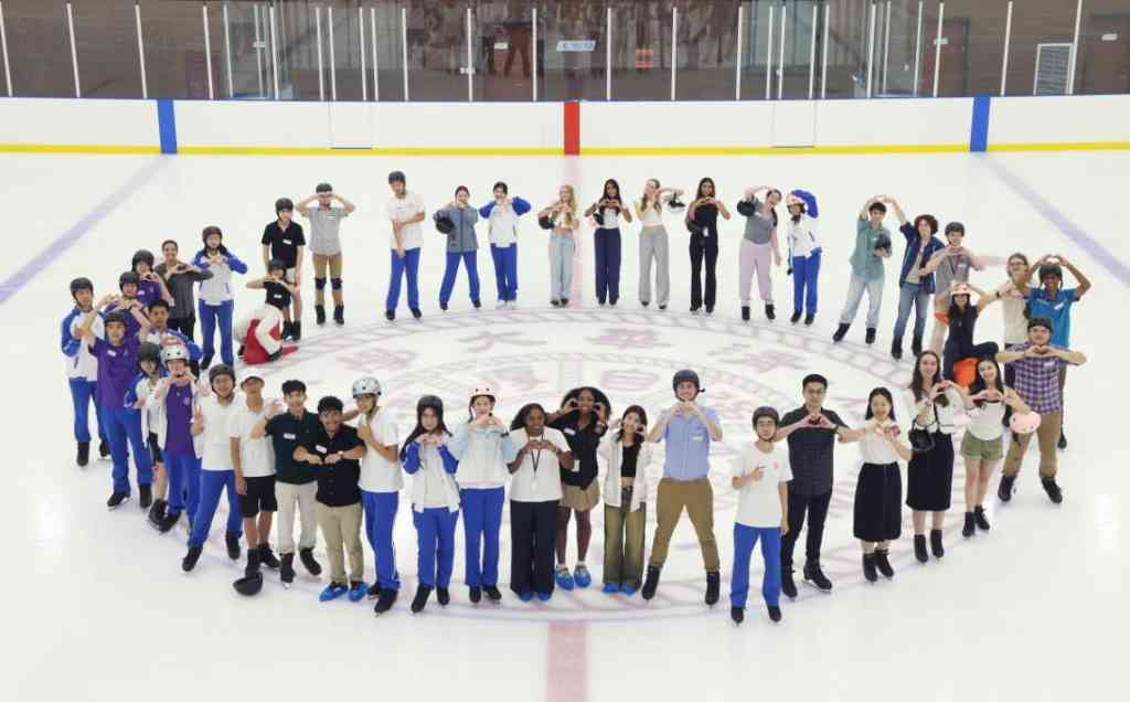 中美学生冰场合影
