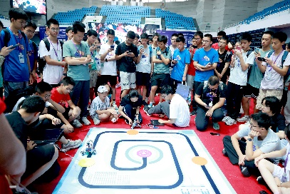 3日下午,智能车和机器狗比赛在综合体育馆举行。同学们一次次向具有挑战性的任务发起冲击,比赛现场气氛激烈非凡。