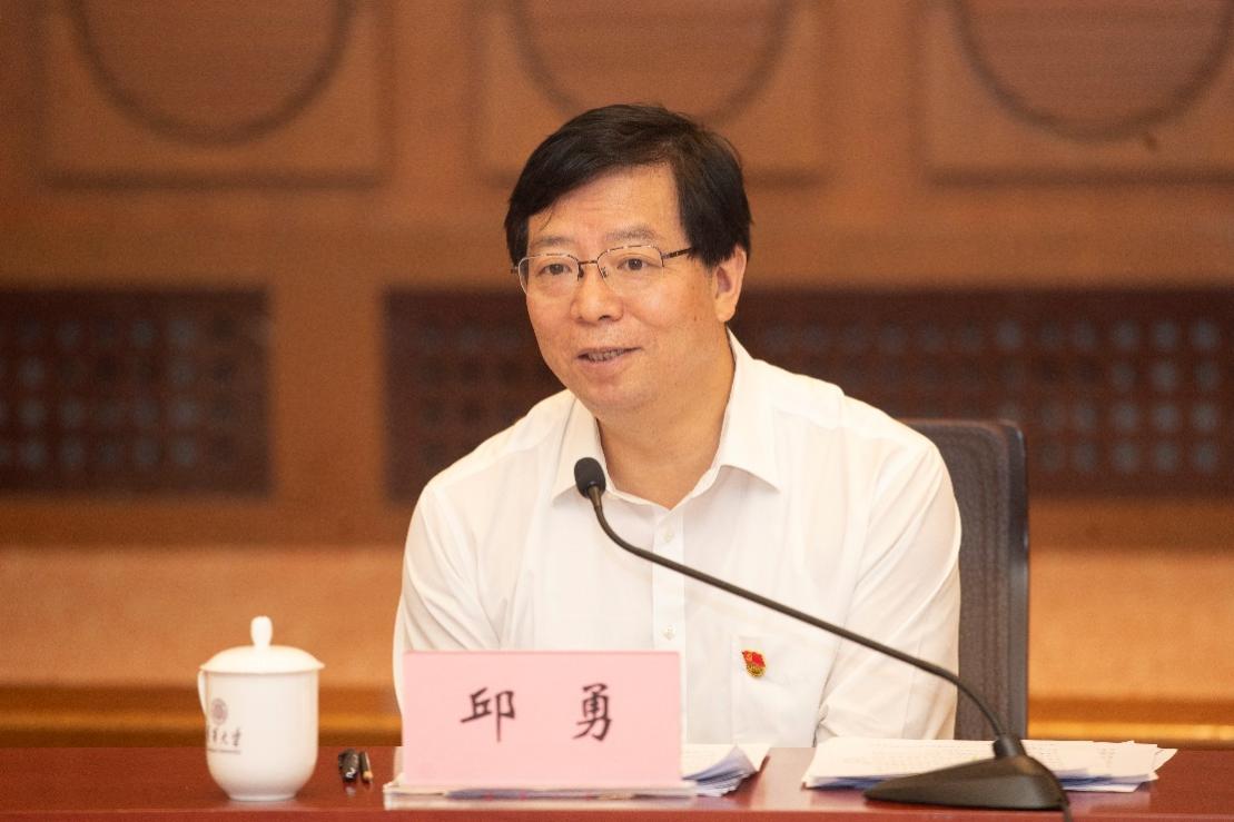 邱勇代表学校党委从党纪学习教育的做法、成效、经验和建立长效机制四个方面作了全面总结和部署。邱勇表示,习近平总书记多次发表重要讲话、作出重要指示,为开展党纪学习教育提供了重要遵循。学校党委将扎实开展党纪学习教育作为一项重要政治任务抓紧抓实、抓出成效,将党纪学习教育与巩固拓展学习贯彻习近平新时代中国特色社会主义思想主题教育成果、深化巡视整改、加强作风建设、推进机构改革等重点工作深度融合、统筹谋划,实现学习培训全覆盖、纪律党课全覆盖、警示教育全覆盖、对照检视全覆盖。以严的标准、实的作风、铁的纪律保障高质量开展党纪学习教育,做到持续深学细悟,多层次开展学习培训;强化警示教育,用身边事警醒身边人;深化检视整改,动真碰硬解决真问题;锤炼严实作风,系统性打造模范机关;全力推动发展,以实干检验学习成效;加强组织领导,重实效防止形式主义。全校党员、干部通过党纪学习教育,政治定力进一步增强,践行“两个维护”更加坚定;纪律定力进一步增强,遵规守纪内化于心、外化于行;道德定力进一步增强,优良传统得到新的发扬;抵腐定力进一步增强,严的氛围全面巩固;担当作为进一步增强,学校事业发展欣欣向荣。