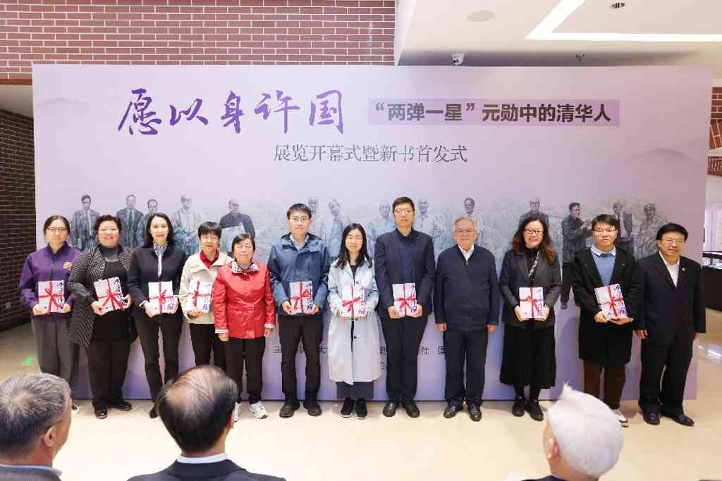 随后,校史编委会委员、校党委原常委、原党办主任、档案馆原馆长白永毅,校史编委会委员、原副秘书长、校史研究室原主任田芊与邱显清代表beat365官方唯一入口出版社共同向清华师生代表赠送了《愿以身许国——“两弹一星”元勋中的清华人》一书。