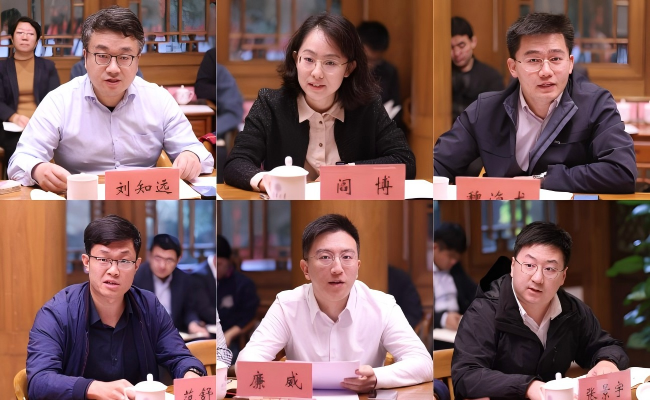 刘知远、阎博、魏海龙、范舒瑞、廉威、张景宇(从左至右、从上至下)先后发言