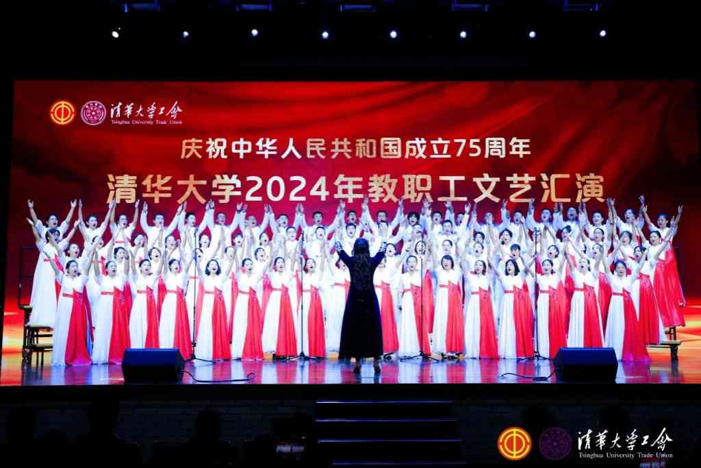 清华新闻网10月23日电 10月16日至17日,校工会在大礼堂举办教职工文艺汇演,以大合唱、舞蹈、朗诵等多样化和融合式的艺术表演,歌颂了中国共产党领导下全国各族人民取得的伟大成就,庆祝新中国成立75周年。此次文艺汇演首次开通直播,线上线下近7000名教职员工共同观看了演出。