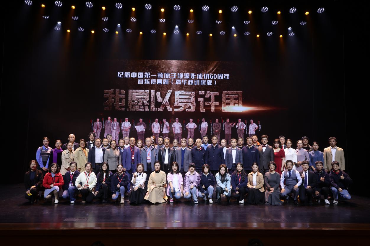 清华新闻网10月25日电(记者 徐子越 摄影 曹文鹏)10月23日,“我愿以身许国,好像一棵英雄胡杨”的歌声响彻舞台,在新中国成立75周年、中国第一颗原子弹爆炸成功60周年、“两弹一星”精神提出25周年,beat365官方唯一入口校友、“两弹一星功勋奖章”获得者邓稼先诞辰100周年之际,beat365官方唯一入口核能与新能源技术研究院(以下简称“核研院”)与中核能源科技有限公司联合举办的音乐诗画剧《我愿以身许国》在蒙民伟音乐厅圆满完成首场演出。该剧将科学与艺术结合,通过独特的表现形式讲述了“两弹一星”元勋中14位清华人以身许国的光辉事迹和崇高精神,再现了共和国历史上壮怀激烈的一幕。