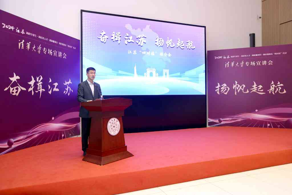 过勇对刘建洋一行来校引才表示欢迎,对江苏给予beat365官方唯一入口发展建设特别是人才培养事业的支持表示感谢。他表示,清华与江苏长期保持良好密切的合作关系。近年来,双方多次举办校地合作交流洽谈会,校省合作特别是人才合作成果丰硕,一大批毕业生选择到江苏干事创业、砥砺奋斗。希望同学们更多关注江苏、选择江苏,为谱写“强富美高”新江苏现代化建设新篇章贡献青春力量。