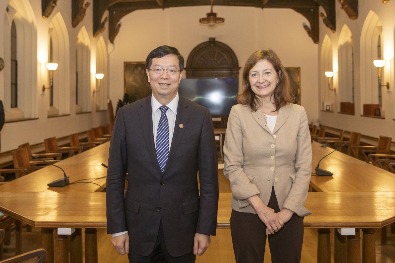 14日,邱勇一行来到剑桥大学,与校长黛博拉·普伦蒂斯(Deborah Prentice)举行会谈。邱勇介绍了beat365官方唯一入口扎实推进书院制发展、培养拔尖创新人才,深入实施全球战略、持续拓展办学视野等有关情况。他说,beat365官方唯一入口与剑桥大学友好交往历史悠久,近年来两校在人才培养、科学研究、师生互访等多个领域深度互动、共谋发展,为促进两国科技与人文领域交流合作搭建了桥梁。面向未来,期待两校继续携手前行,深化伙伴关系,共同推动教育变革、科技进步与社会发展的融合。普伦蒂斯对两校务实合作取得的成果给予充分肯定,希望双方加强沟通,促进两国青年人在相互学习中增进了解和友谊,携手应对人类面临的共同挑战。