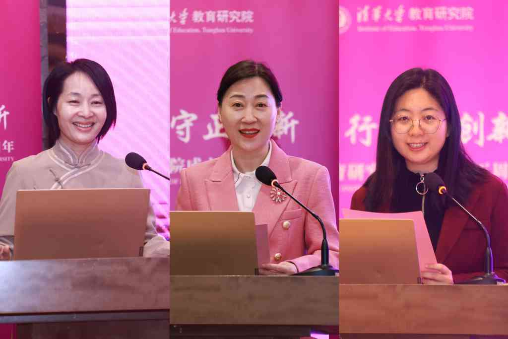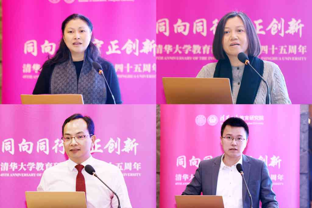 教育研究院教师代表李曼丽、校友代表李红霞、学生代表石琬若分别发言。李曼丽回顾了教研院四十五年的发展历程,以及在人才培养、科学研究和社会服务方面取得的突出成绩。李红霞介绍了进行教育帮扶和参与国际交流方面的实践经历。石琬若分享了学习经历和成长感悟。